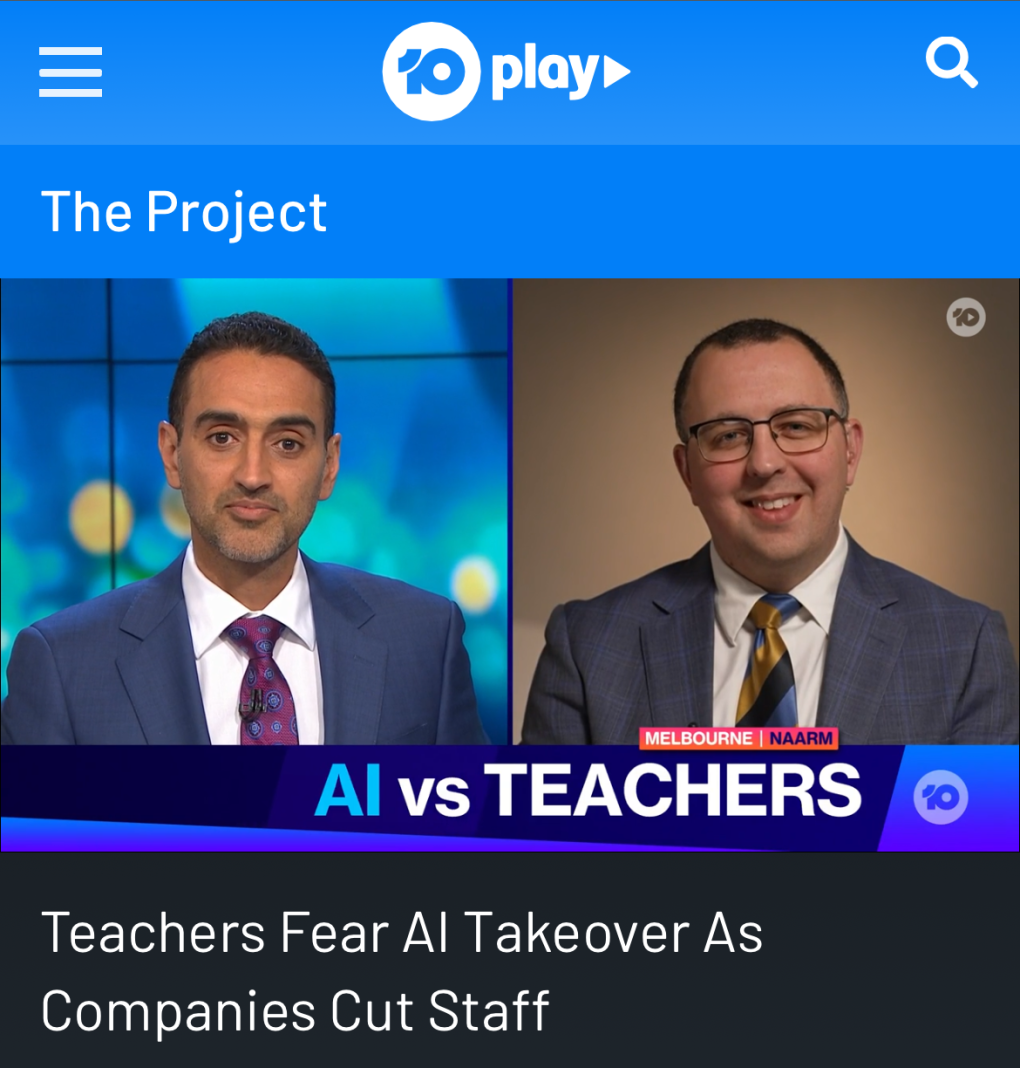 You can watch it here: https://10play.com.au/theproject/news/2025/teachers-fear-ai-takeover-as-companies-cut-staff/tpv250529spqyg