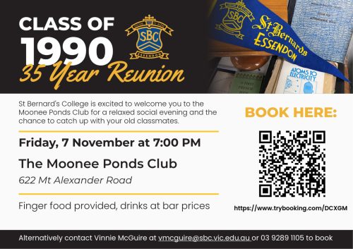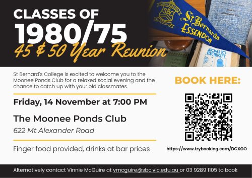 To all from the St Bernard’s classes of 1990, 1980 and 1975: your old classmates would love to see you there.