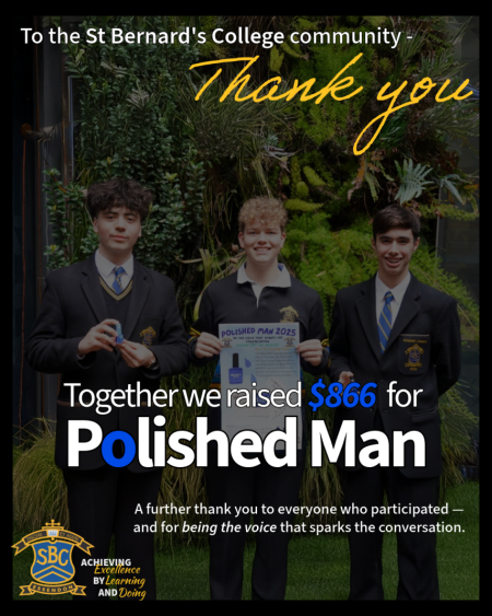 Thank you to the St Bernard’s College community — together we raised $866 for Polished Man.