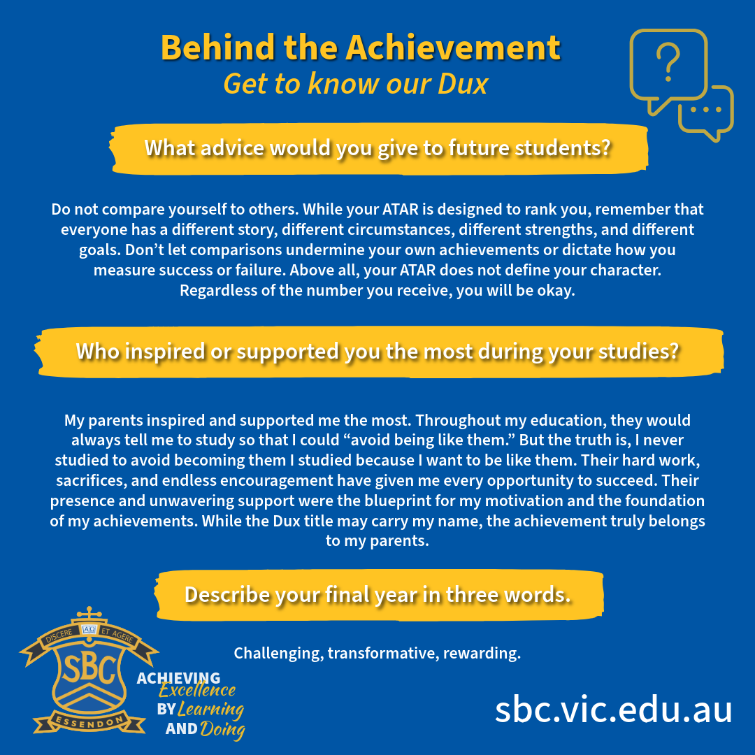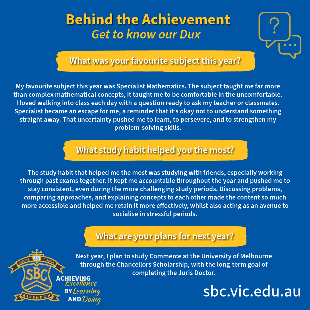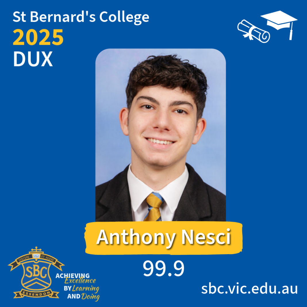 We’re proud to celebrate Anthony, our Dux for 2025, achieving an outstanding ATAR of 99.9!